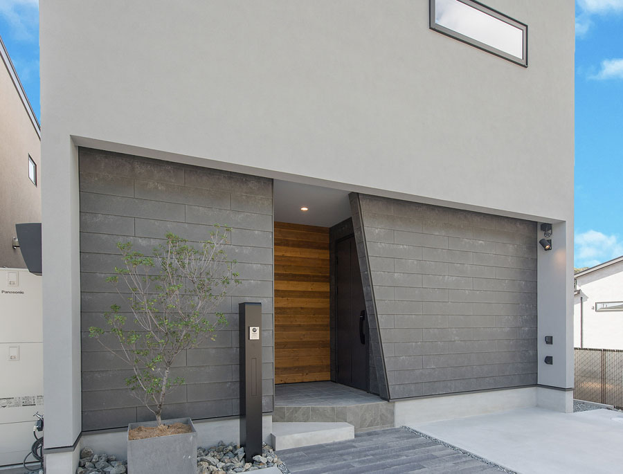 自然の温かみを感じる外観デザイン、心地いい暮らしを両立した空間。