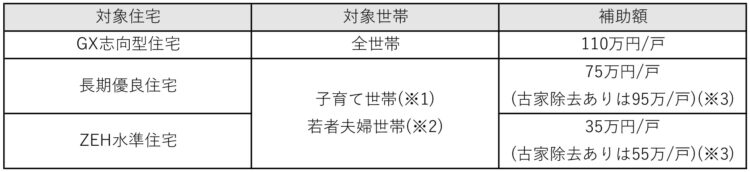 みらいエコ住宅2026事業では、GX志向型住宅を建てた場合の補助金額は1戸あたり110万円で、全ての世帯が対象となる点が魅力です。