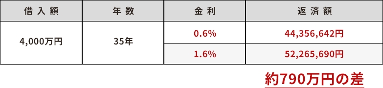 住宅ローンは、金利が1%違うだけで、返済額が大きく変わります。
